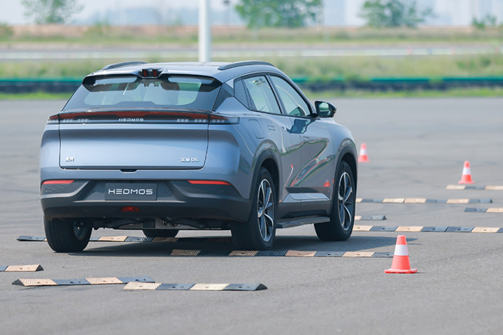 在金卡纳赛道体验项目中,得益于5.4米的转弯半径,示界06展现了小半径转向的灵活性。车辆在狭窄的8字绕弯和连续急弯中转向灵活,车头指向精准,车尾跟随性良好,未出现拖拽感或推头现象。